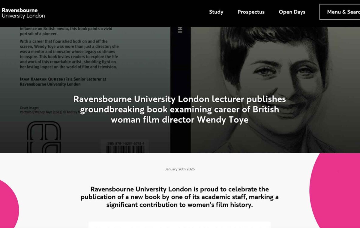 “Ravensbourne University London is proud to celebrate the publication of a new book by one of its academic staff, marking a significant contribution to women’s film history….”